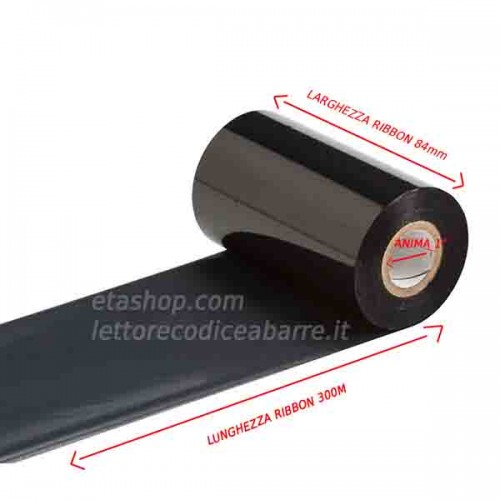 Ribbon cera standard f.to 84mm x 300m ink OUT anima 1", per stampanti industriali Zebra, Argox, TSC. Citizen, Sato e desktop con ribbon da 1 pollice. Sconti a partire da 20 rotoli